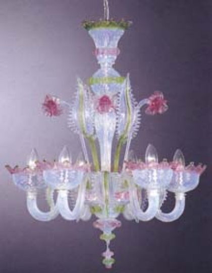 イタリア製シャンデリアイタリア ベネチアンガラスガラス:MURANOカラー:グリーン ピンク仕上げ口径:E14 6灯LUXURY LIGHTING