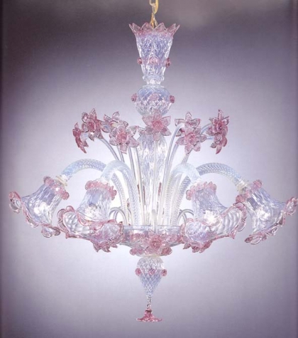イタリア製シャンデリアイタリア ベネチアンガラスガラス:MURANOカラー:ホワイト ピンク仕上げ口径:E14 5灯LUXURY LIGHTING