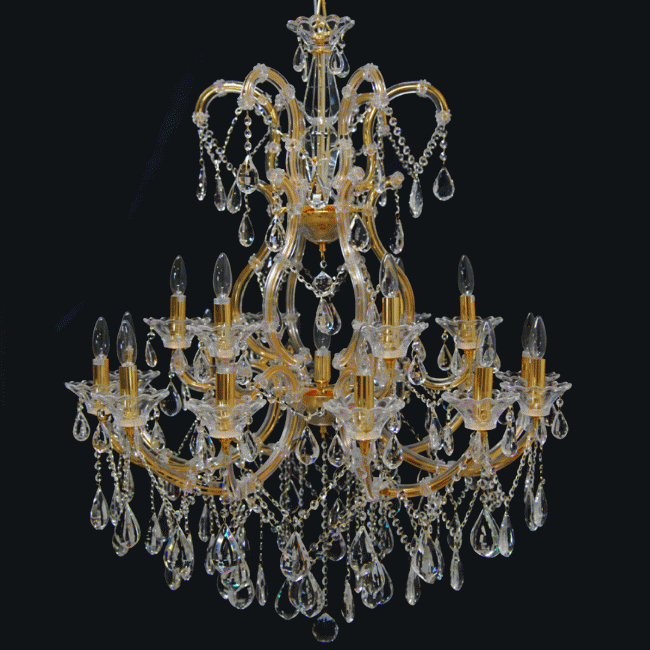 クリスタルガラス仕様 口径:E17 19灯 31kg ゴールド色 チェーン吊り下げタイプ 大型シャンデリア