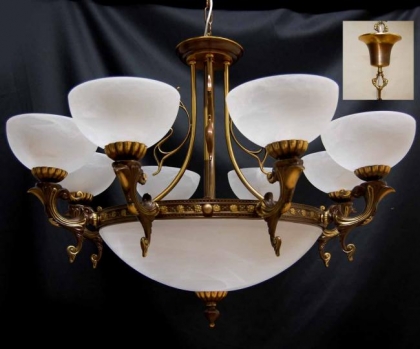 シャンデリアブロンズ調仕上げシェード:ホワイトガラス重さ:15kg11灯(8灯:E26 3灯:E17)