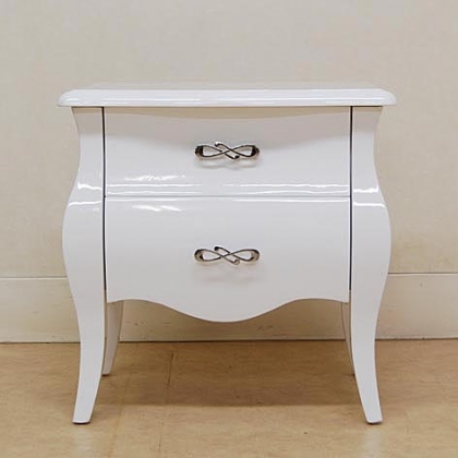 ナイトテーブル(2段チェスト)ホワイト鏡面塗装取っ手:クローム色