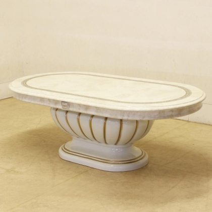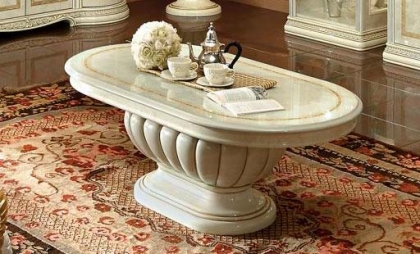 ソファーにあわせるテーブルです。背が少し高いので珈琲や紅茶を飲むときにも程よい高さになっています。足元はゴージャスな丸みの帯びた形で可愛らしさをさり気なく演出しています。