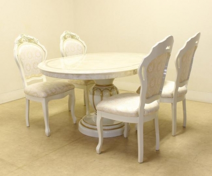 ダイニング5点セット。Φ110の円形テーブルですが、延長式のため148pの楕円型にもなります。店舗用にも人気のあるサイズです。