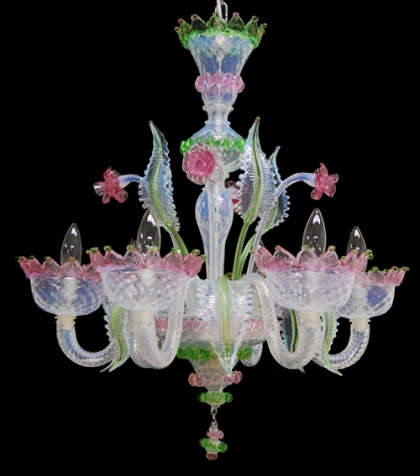 イタリア製シャンデリアイタリア ベネチアンガラスガラス:MURANOカラー:ピンク・グリーン口径:E14 6灯LUXURY LIGHTING