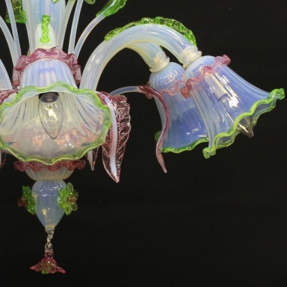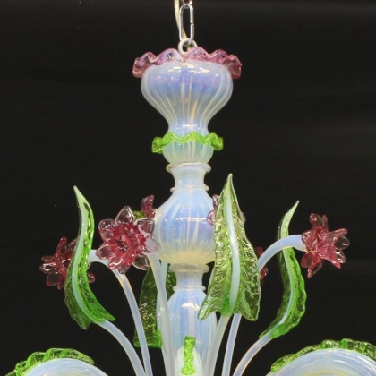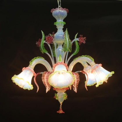 イタリア製シャンデリアイタリア ベネチアンガラスガラス:MURANOカラー:ピンク・グリーン口径:E14 6灯LUXURY LIGHTING